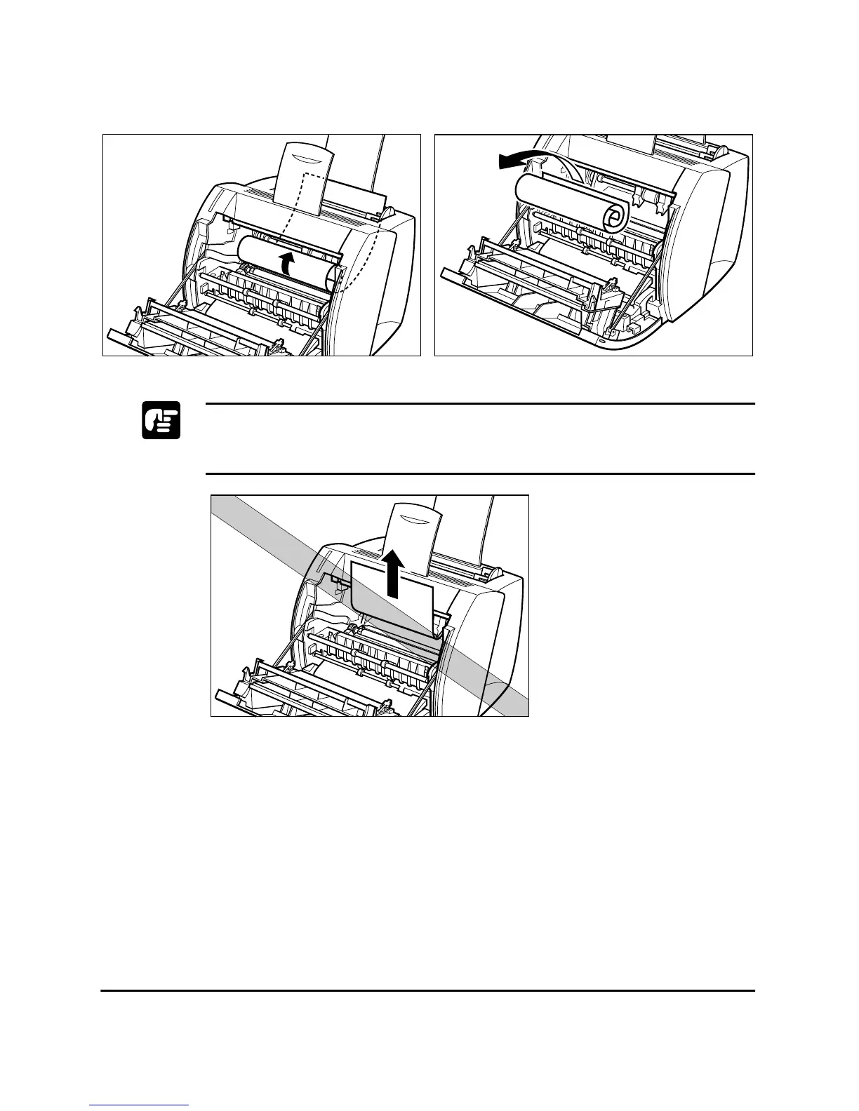 Do not remove jammed paper at a sharp upwards angle; the toner on the