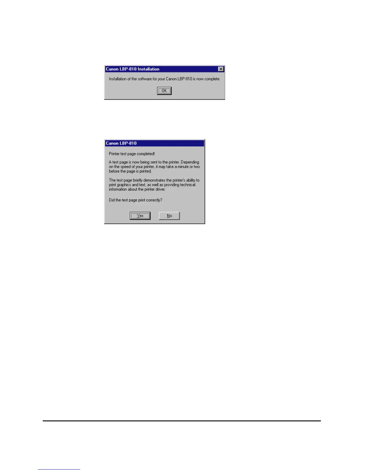 completes, and the following dialog appears. If the page printed