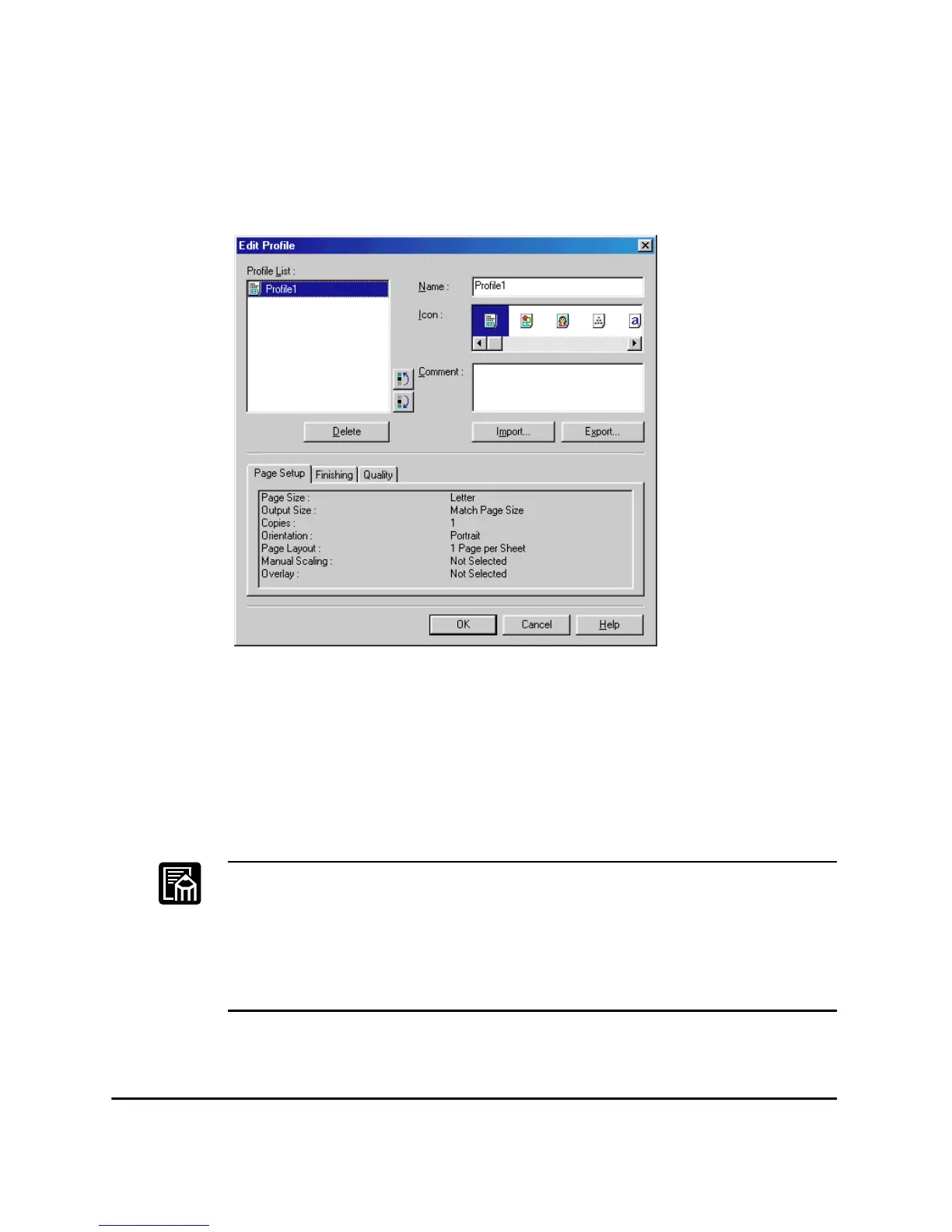 Delete lets you delete the selected profile.