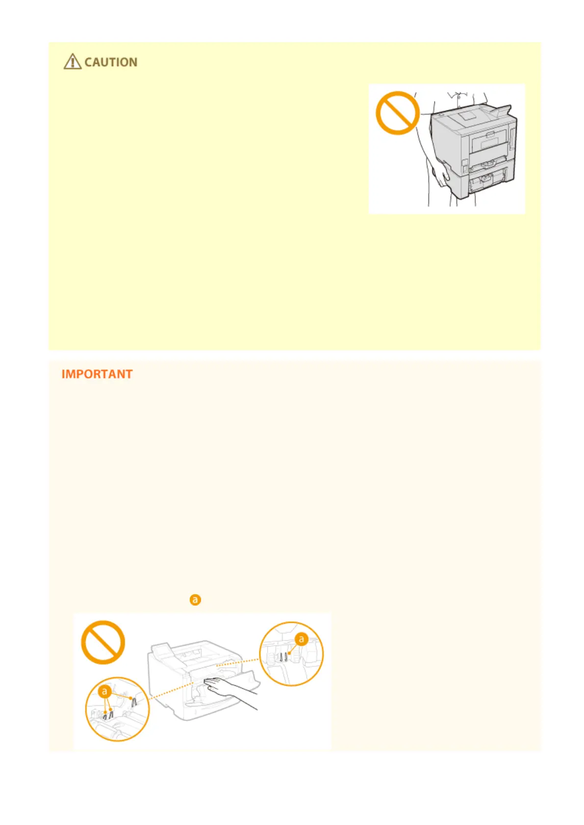 ● Do not carry the machine with the paper drawers or the optional