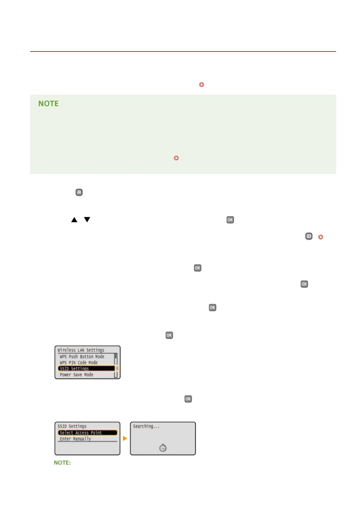 required setup information, including the SSID and network key ( Checking the SSID and Network Key(P. 150) ).