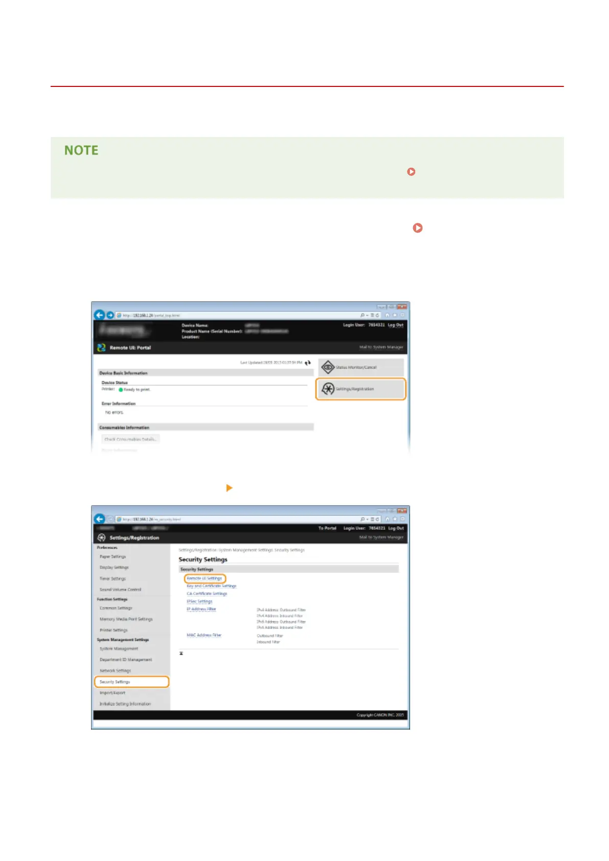 Click [Security Settings] [Remote UI Settings].