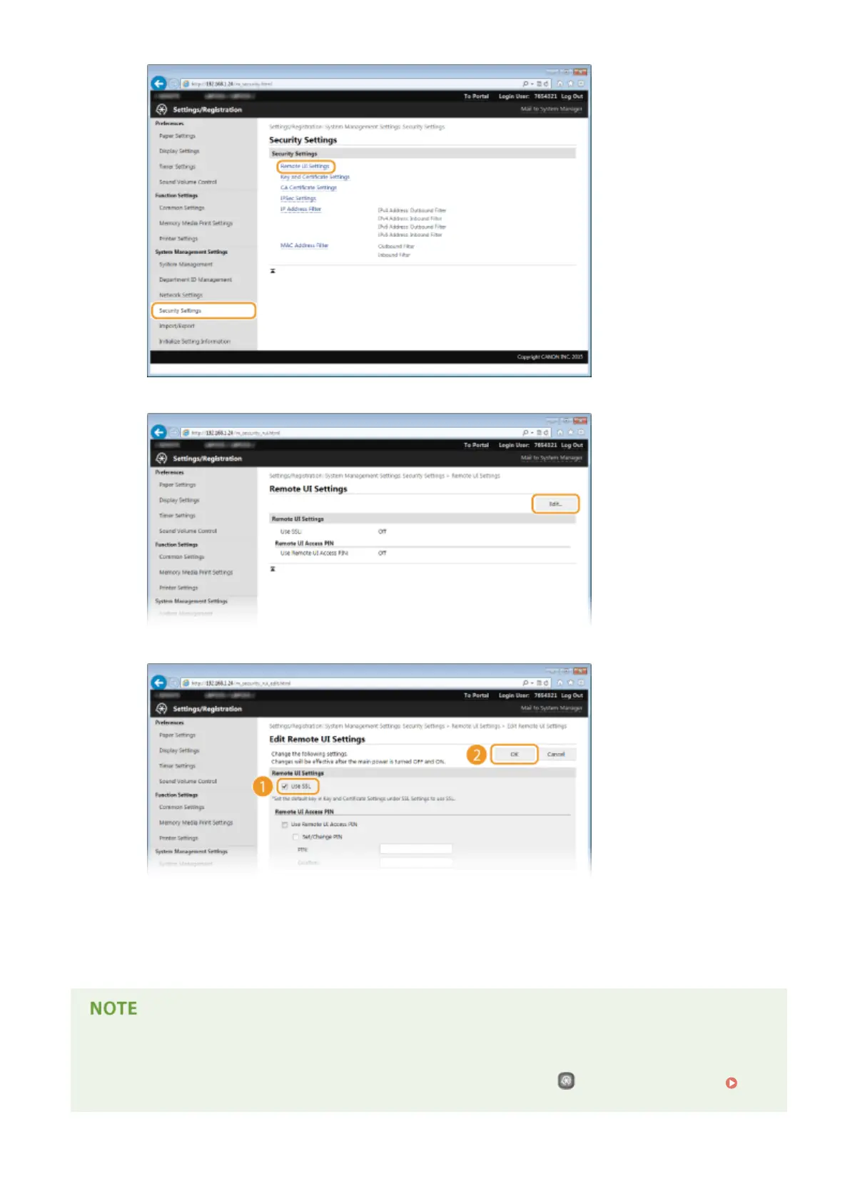 ● You can also enable or disable SSL encrypted communication by pressing