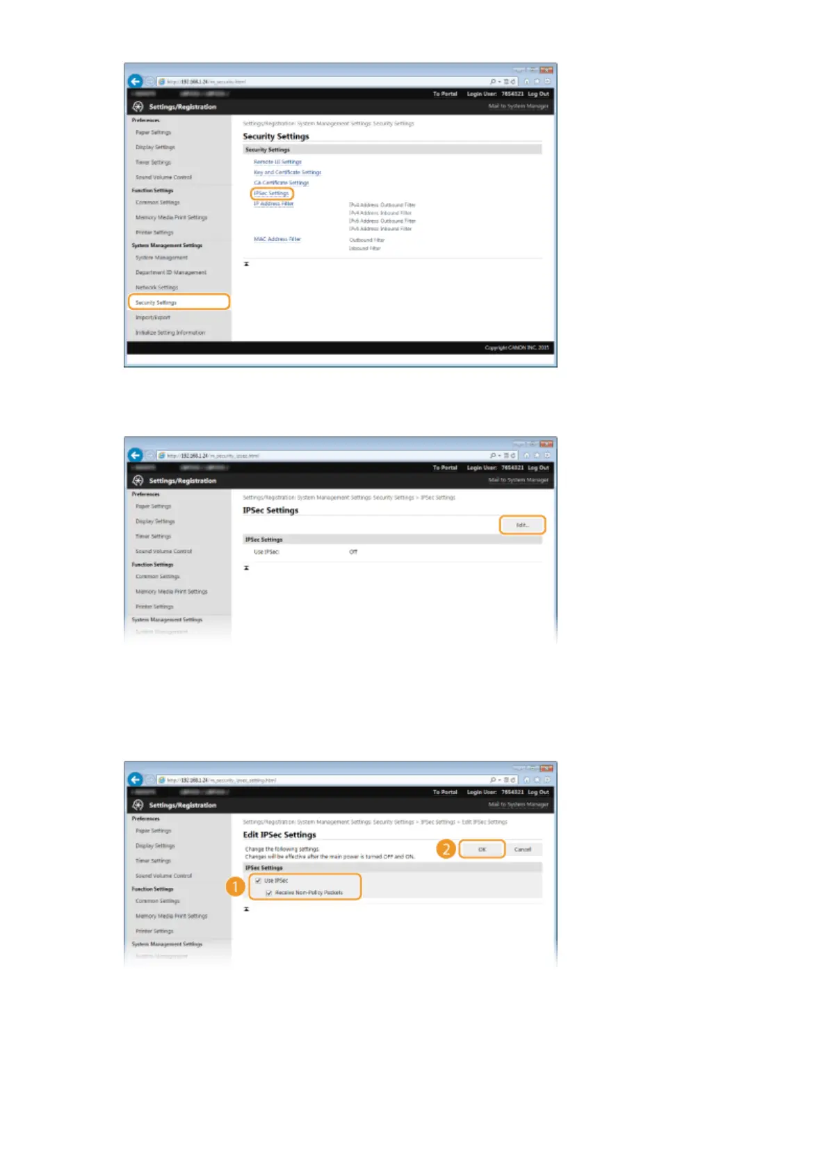 Select the [Use IPSec] check box and click [OK].