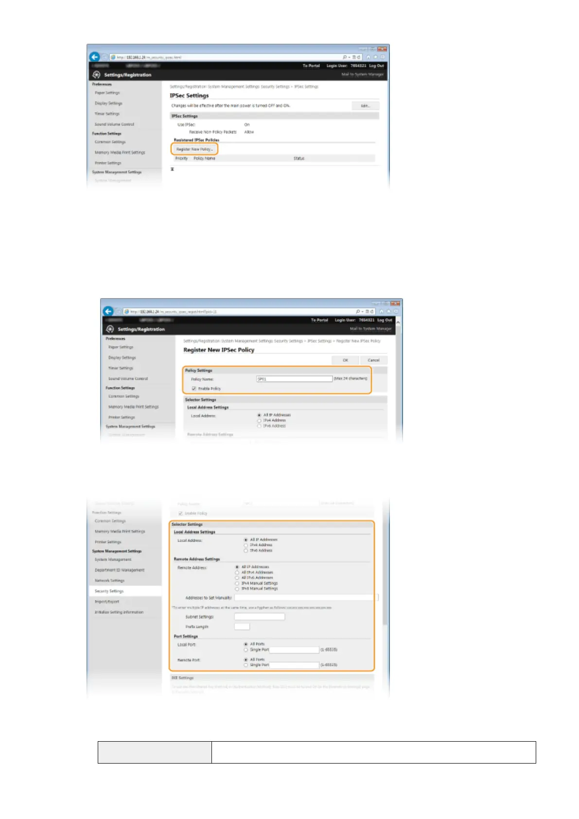 In the [Policy Name] text box, enter up to 24 alphanumeric characters for a name that is used for