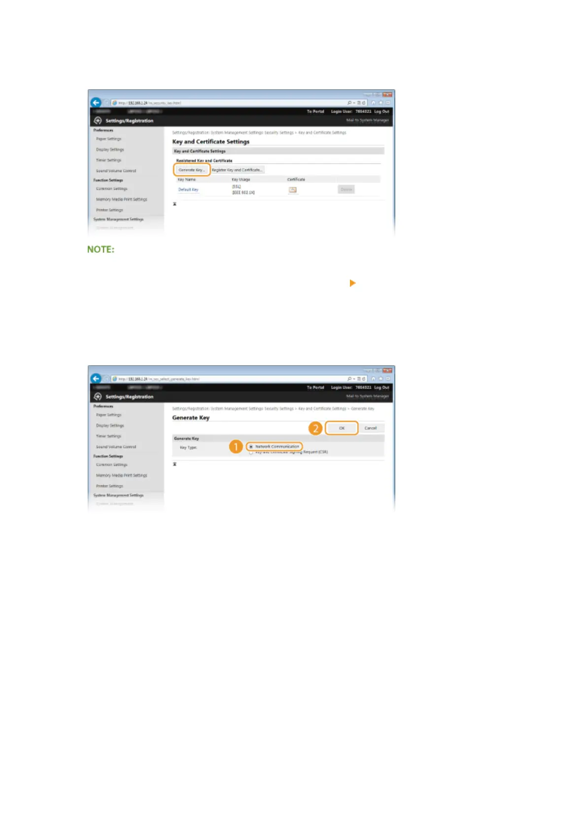 ● A key pair cannot be deleted if it is currently used for some purpose, such as when "SSL" or "IEEE 802.1X",