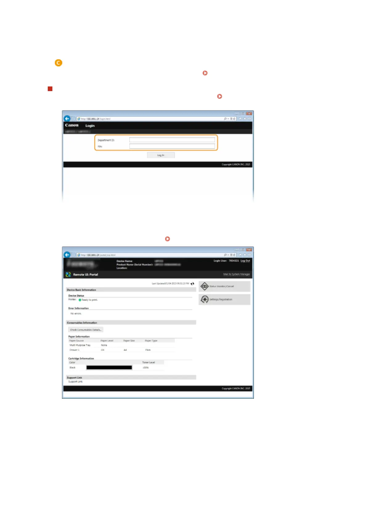● Portal Page (main page) will be displayed. Remote UI Screens(P. 272)