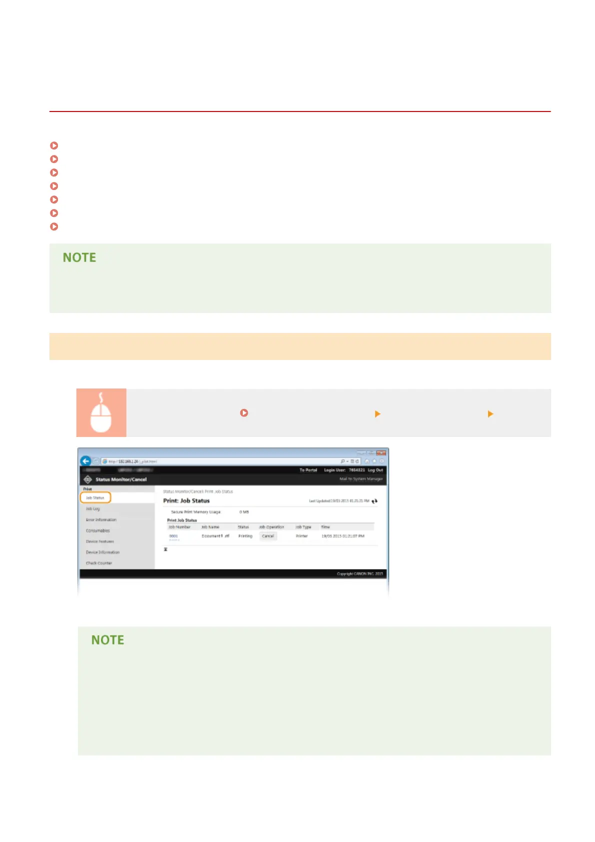 Log on to the Remote UI ( Starting Remote UI(P. 270) ) [Status Monitor/Cancel] [Job Status]