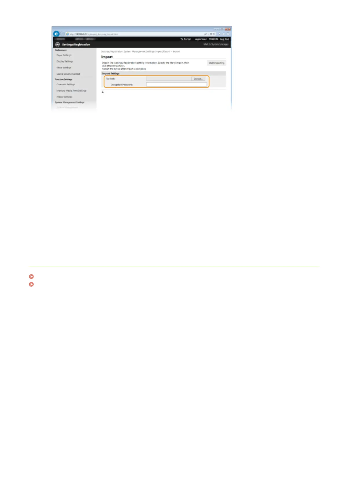 Enter the password set when the settings were exported.