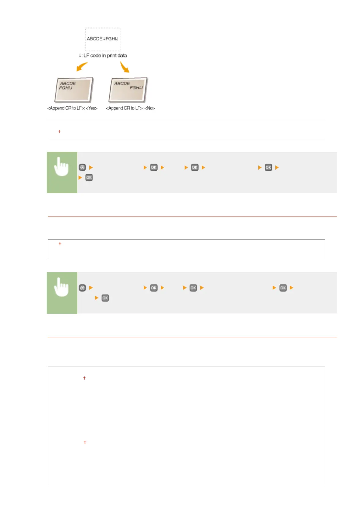 <Printer Settings> <PCL> <Append CR to LF> Select <Yes> or <No>