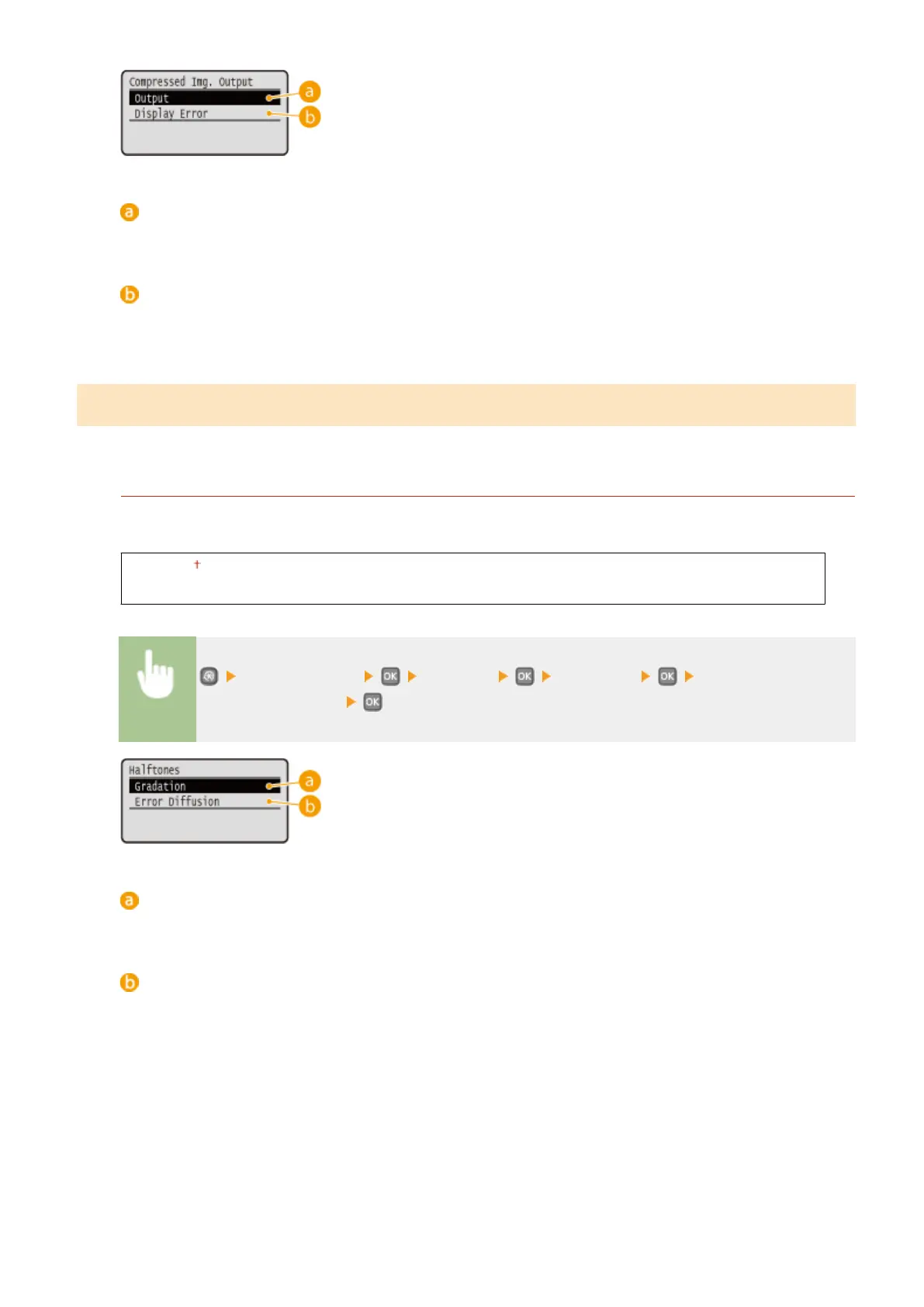 You can select the printing method to reproduce halftones (the intermediate range between the lighter and