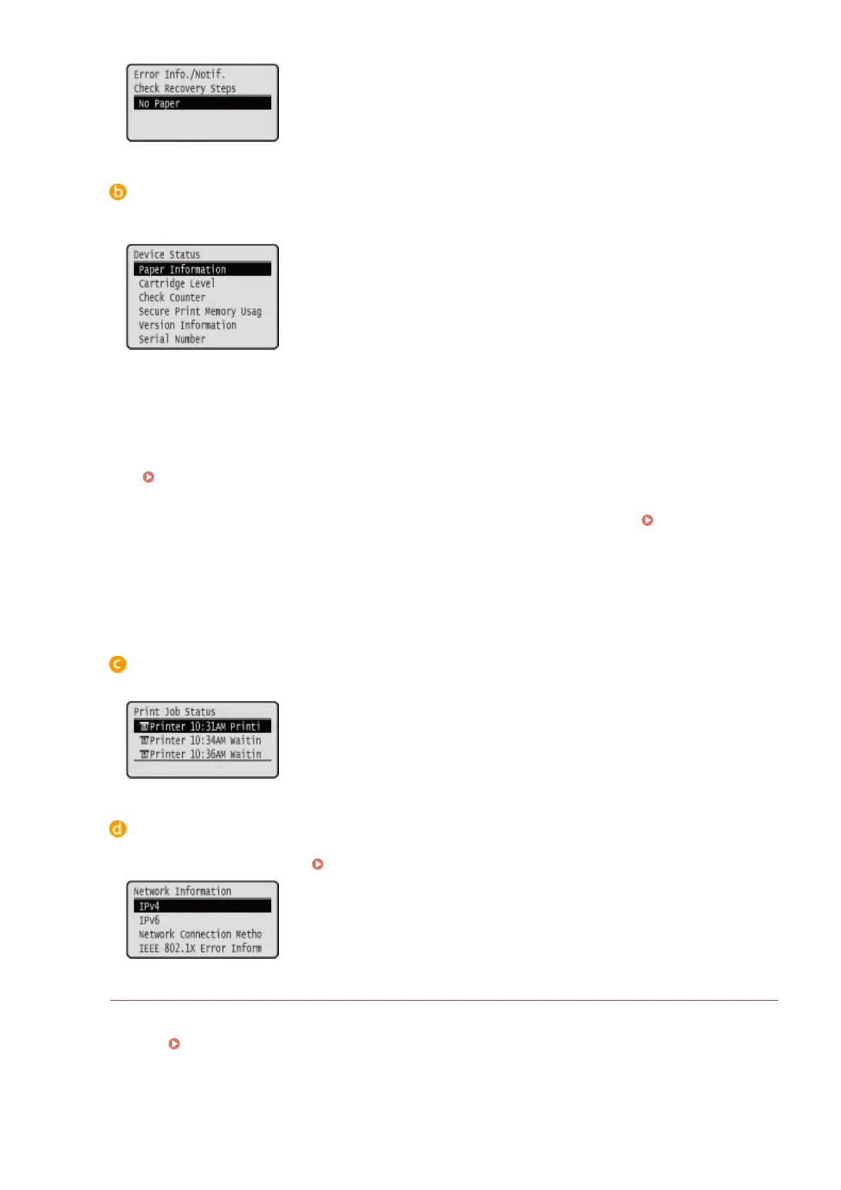 Displays whether paper is loaded in each paper source.