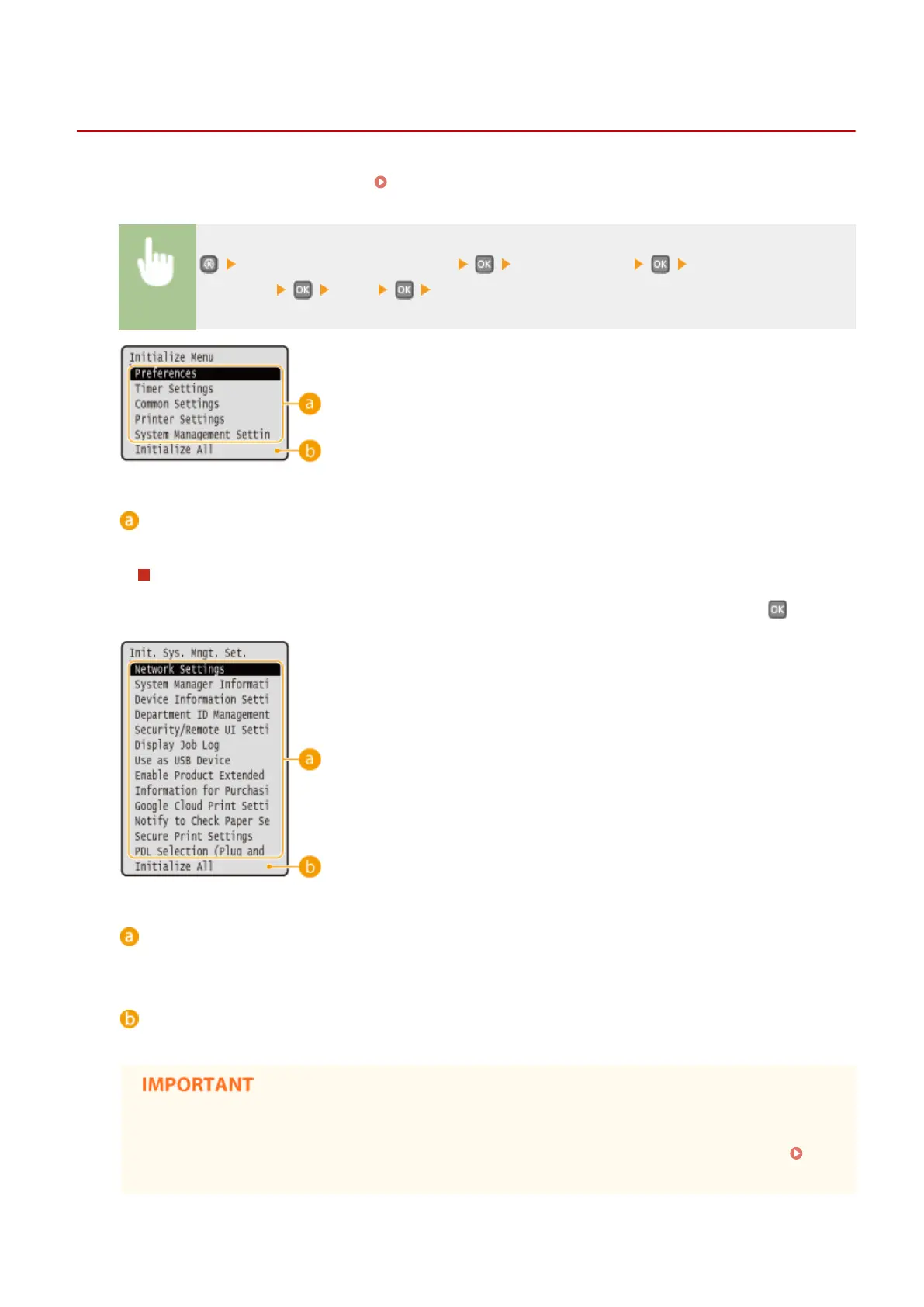 The Remote UI Access PIN is also initialized. After an initialization, reset the Remote UI Access PIN.