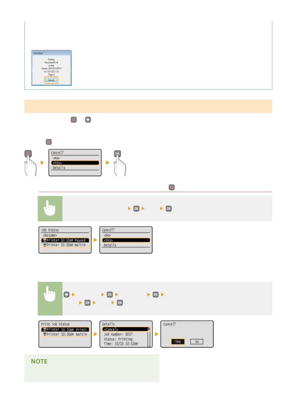<Print Job> <Job Status> Select the document on the <Print Job Status>