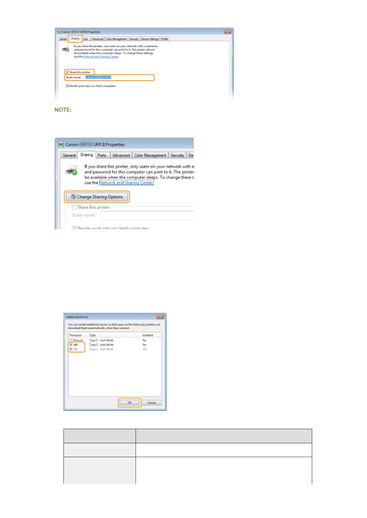 ● This operation is required if you want to install printer drivers in other computers running a different bit