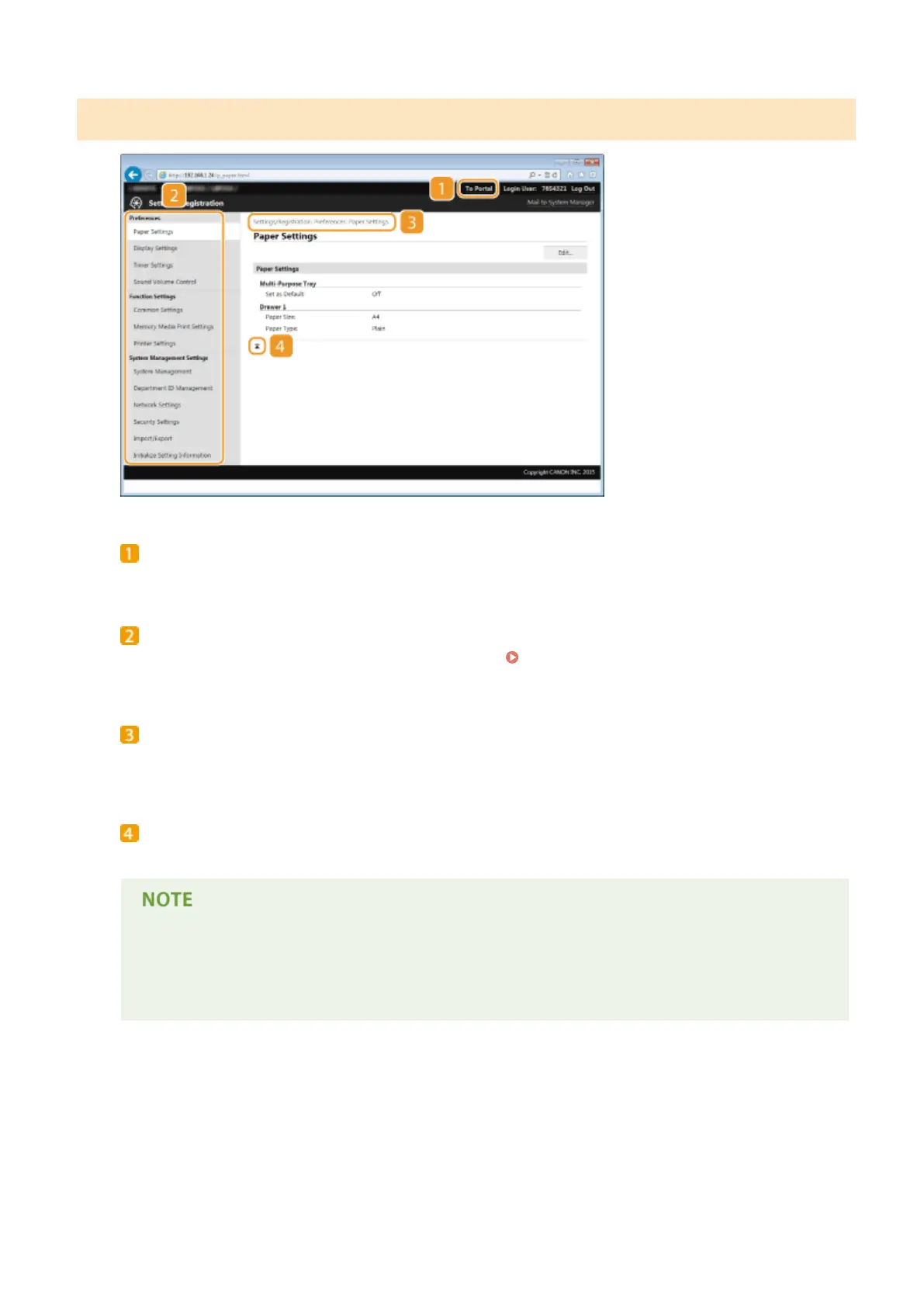 ● You can only set [System Management Settings] when you have logged on in System Manager Mode.
