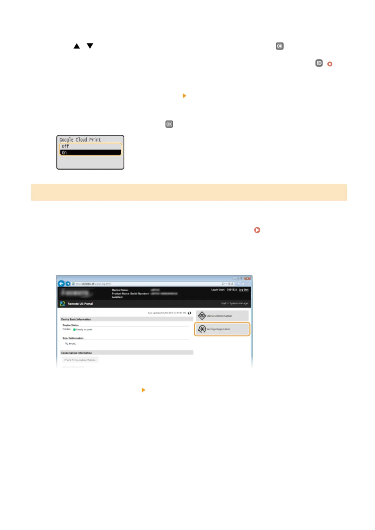 Select <Google Cloud Print Settings> <Enable Google Cloud Print>.