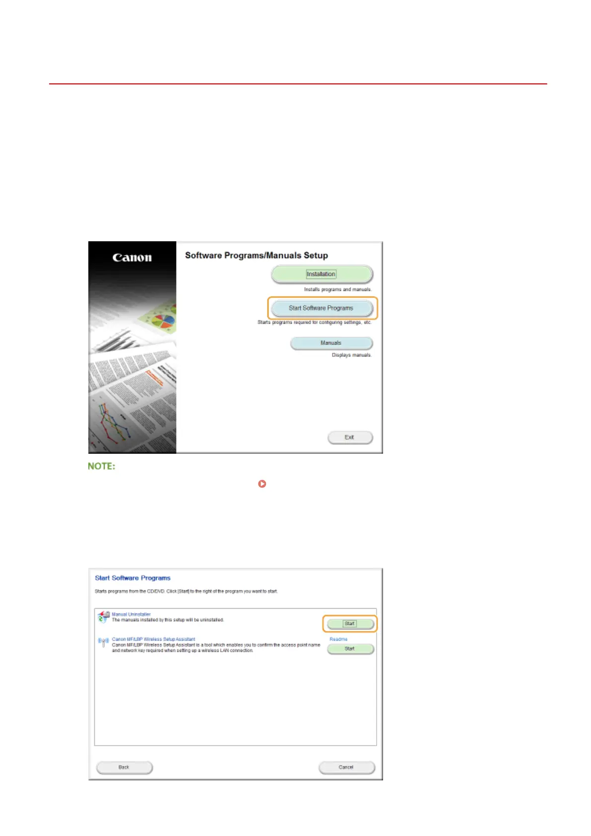 ● If the above screen is not displayed, see Displaying the [Software Programs/Manuals Setup]