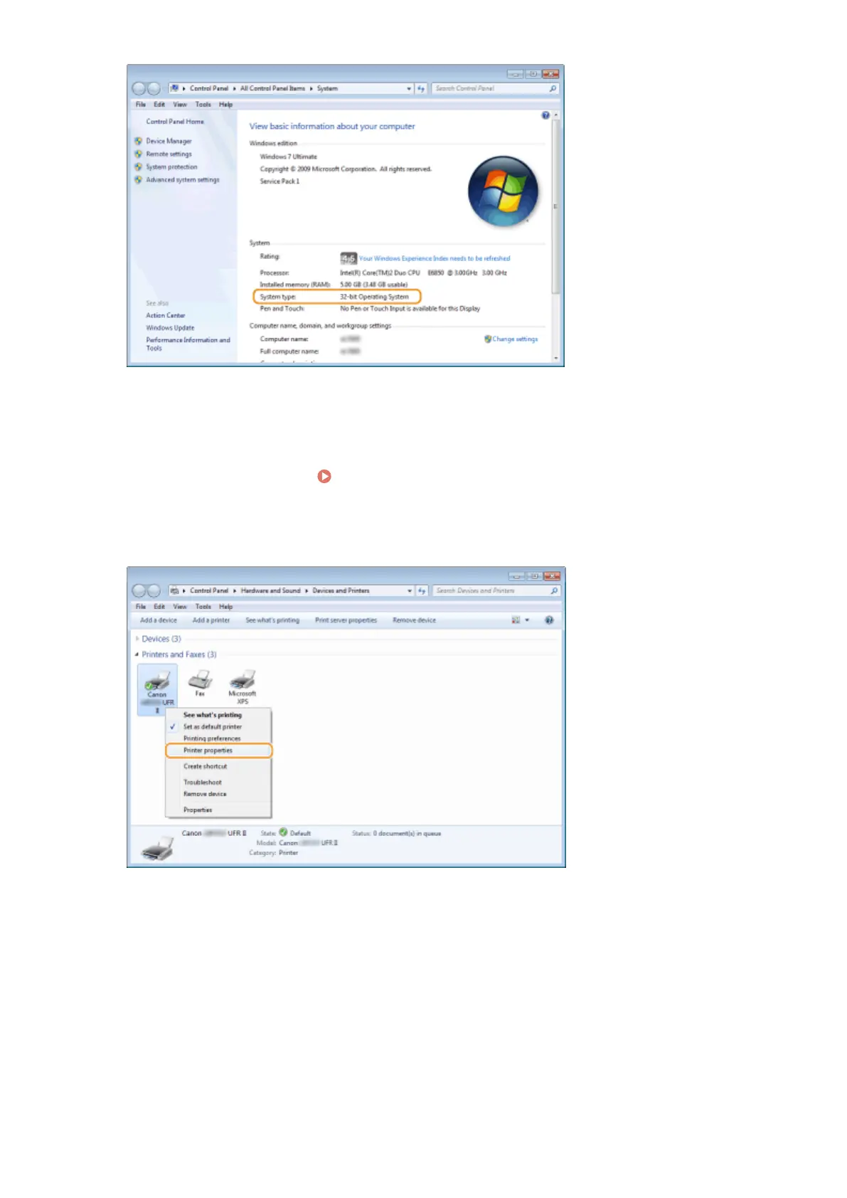 Right-click your printer icon and click [Printer properties] or [Properties].