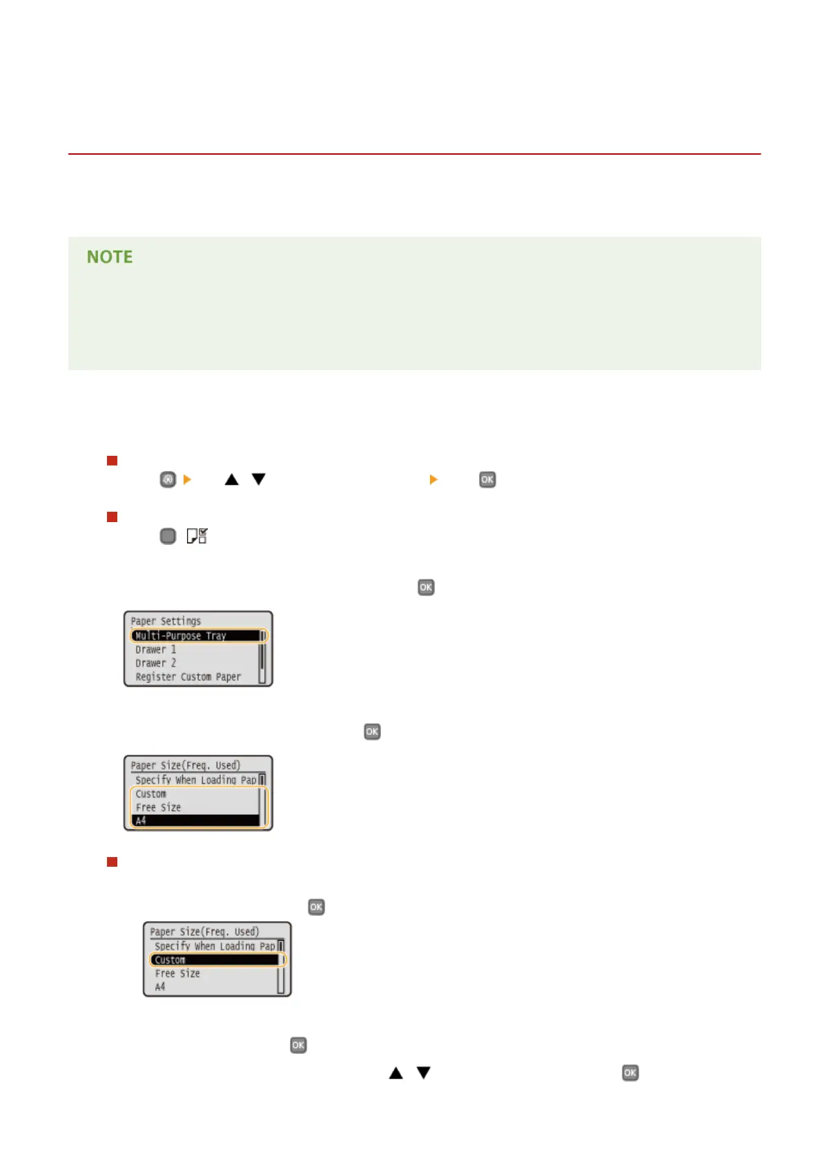Canon LBP251dw - Registering Default Paper Settings for the Multi-Purpose Tray