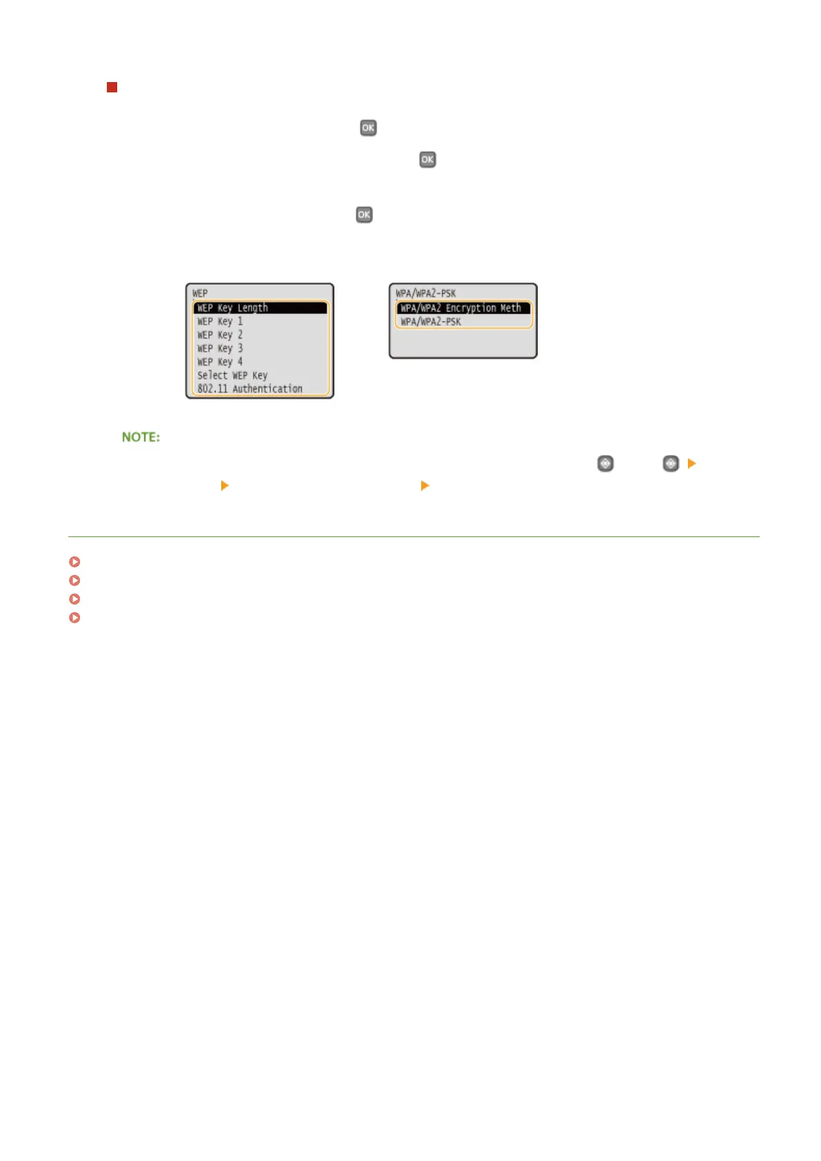 ● <Wireless LAN Status> and <Latest Error Information> can be viewed from . Press <Network