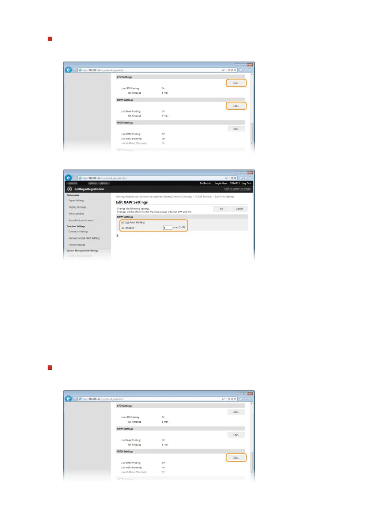 Click [Edit] in [LPD Settings] or [RAW Settings].