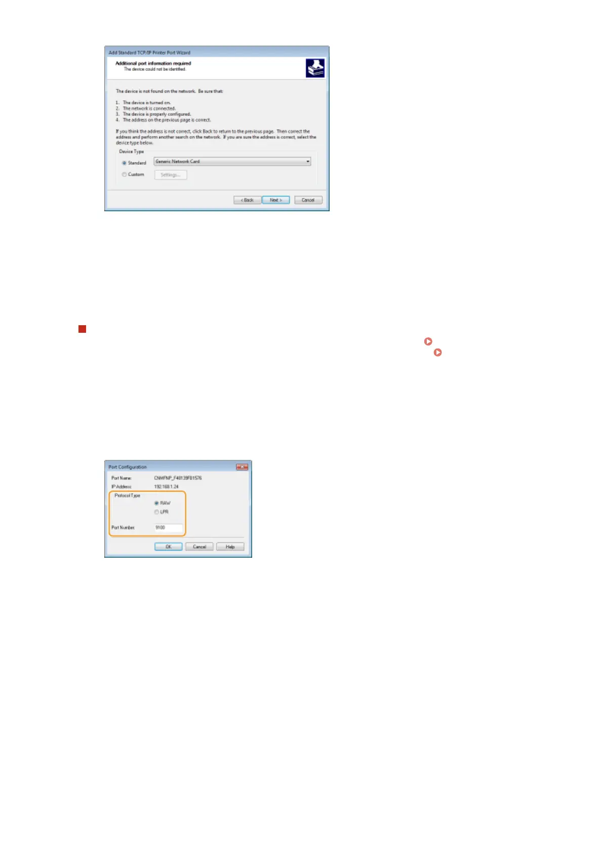 If the printing protocol (LPD or RAW) has been changed on the machine side ( Conguring Printing