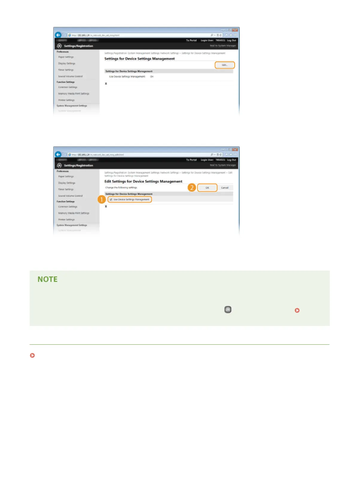 Select the [Use Device Settings Management] check box and click [OK].