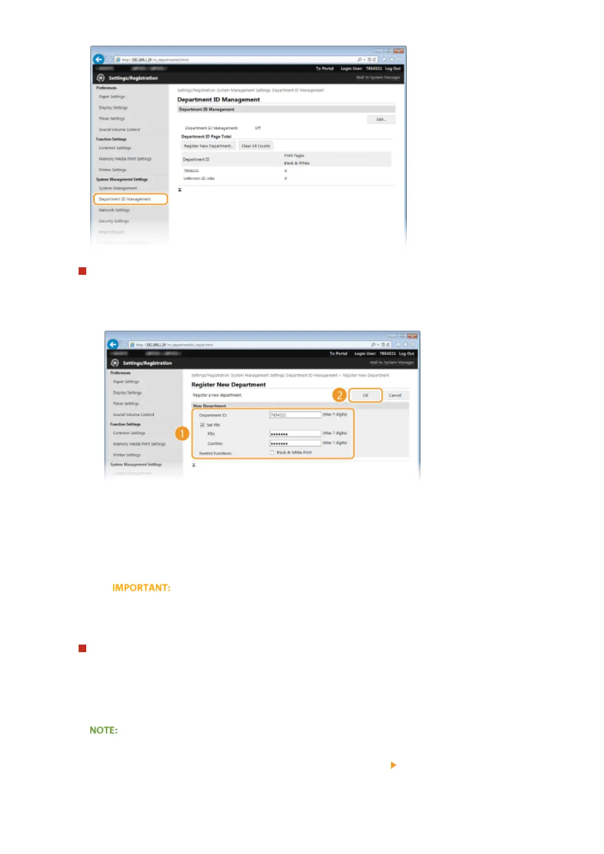 ● Click [Delete] on the right of the Department ID you want to delete click [OK].