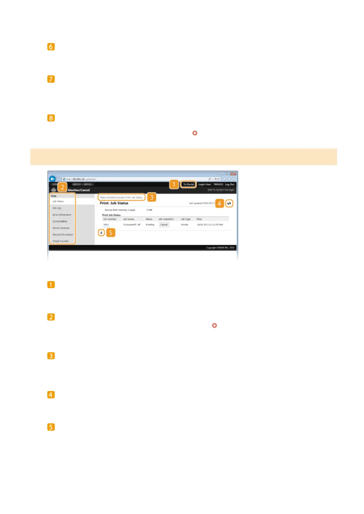 Displays [Status Monitor/Cancel] page. You can use this page to check the current printing status, cancel
