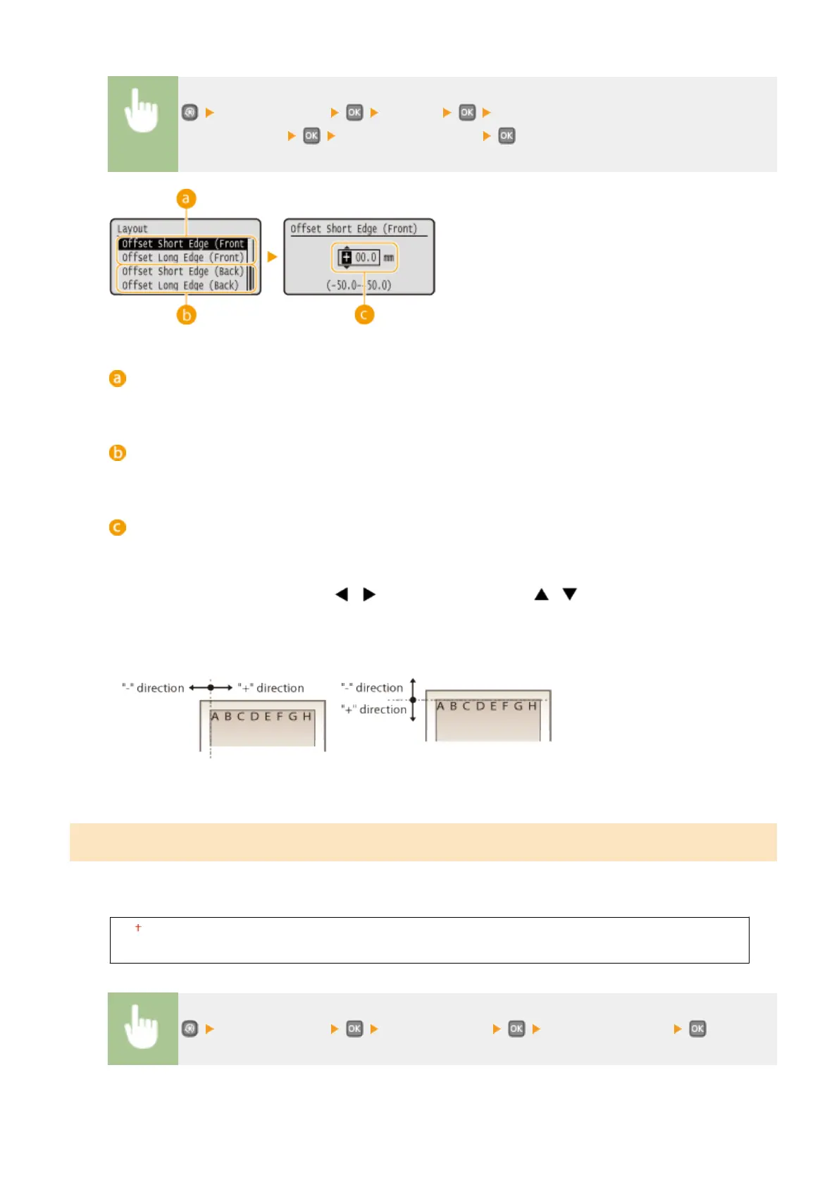 position in the left-to-right direction. For <Offset Long Edge (Front)>/<Offset Long Edge (Back)>, specify a