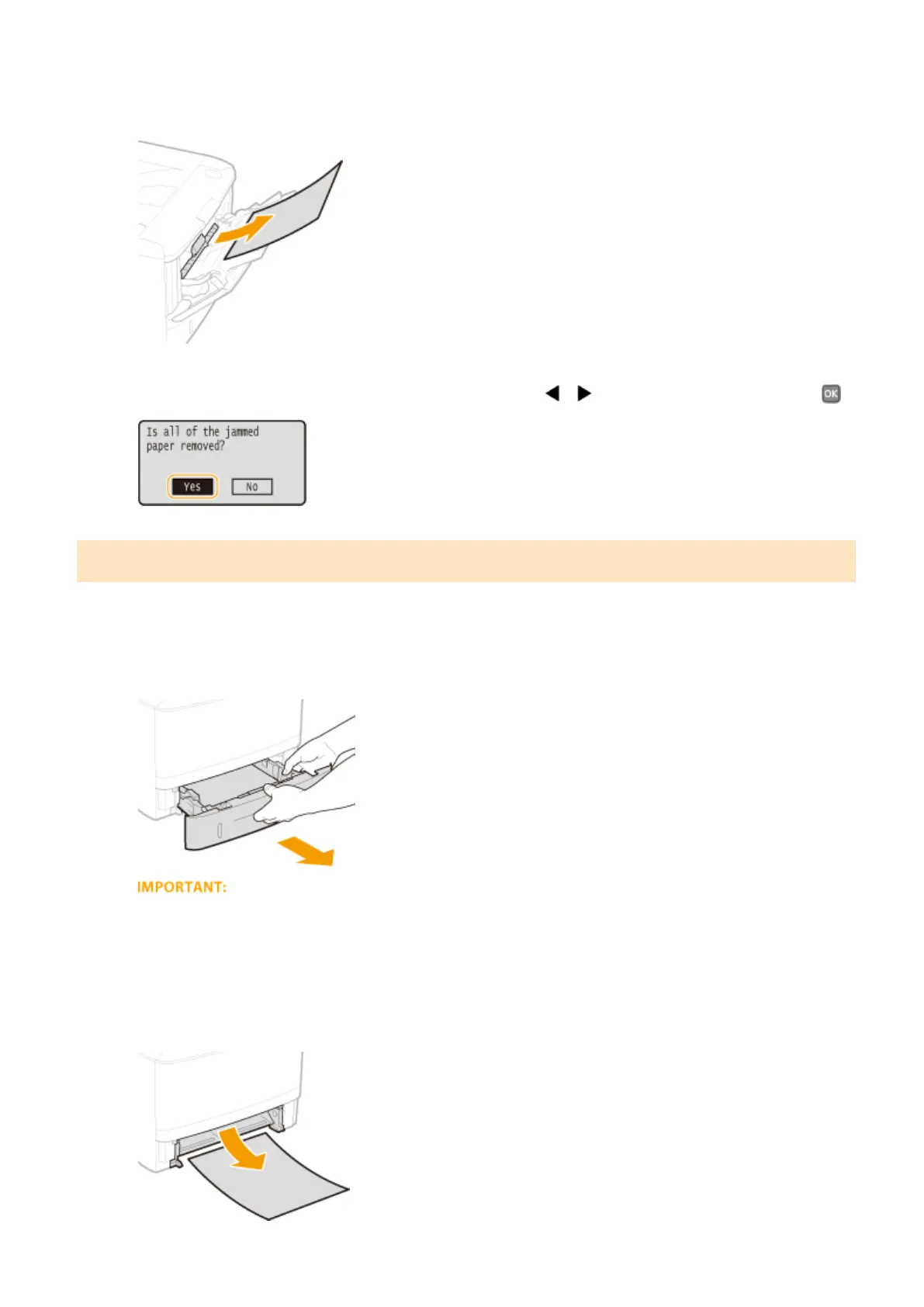 If the jammed paper cannot be removed easily, do not forcibly pull it out, but follow the procedure for a different