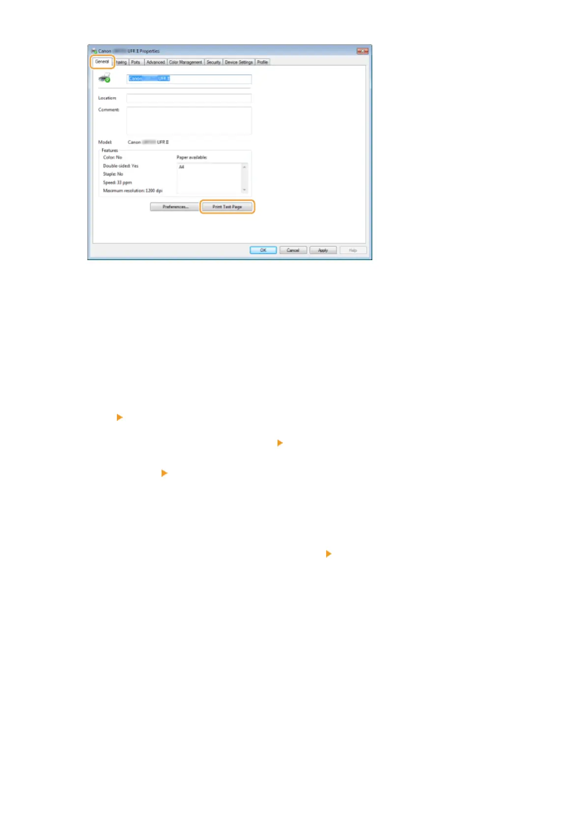 ➠ The test page is printed.