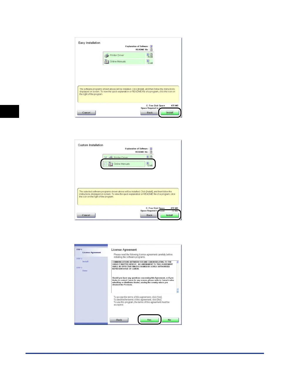 If you selected [Custom Installation] in Step 7, clear the [Online Manuals] check