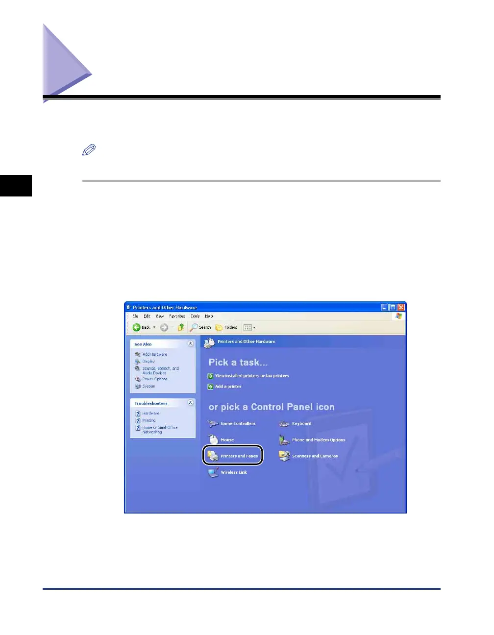 click [Printers and Other Hardware] ➞ [Printers and Faxes].