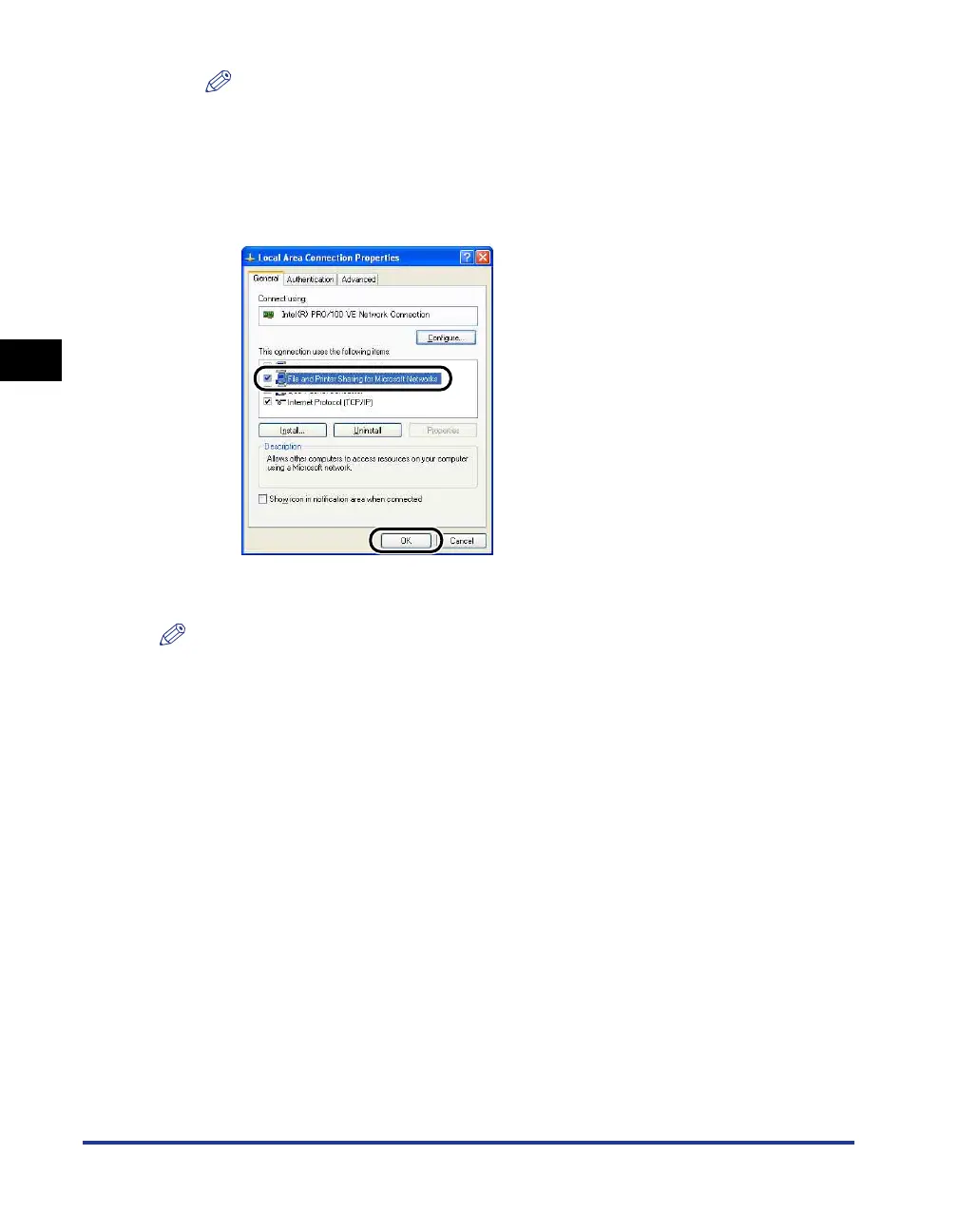 For Windows XP, the printer cannot be shared over a network using the default settings