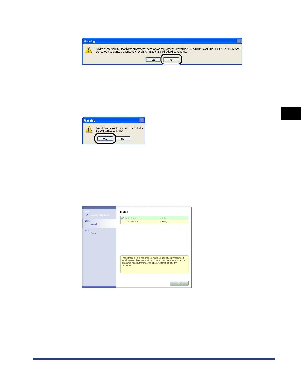 equipped with Windows Firewall, the following screen is displayed. Click [No].