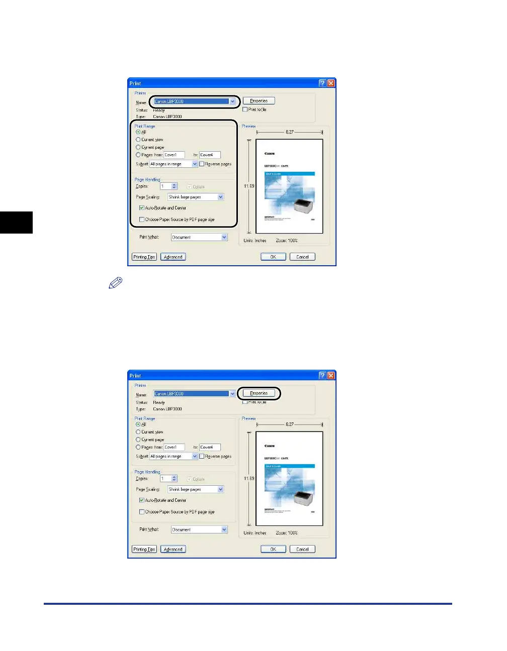 The [Canon LBP3000 Properties] dialog box is displayed.