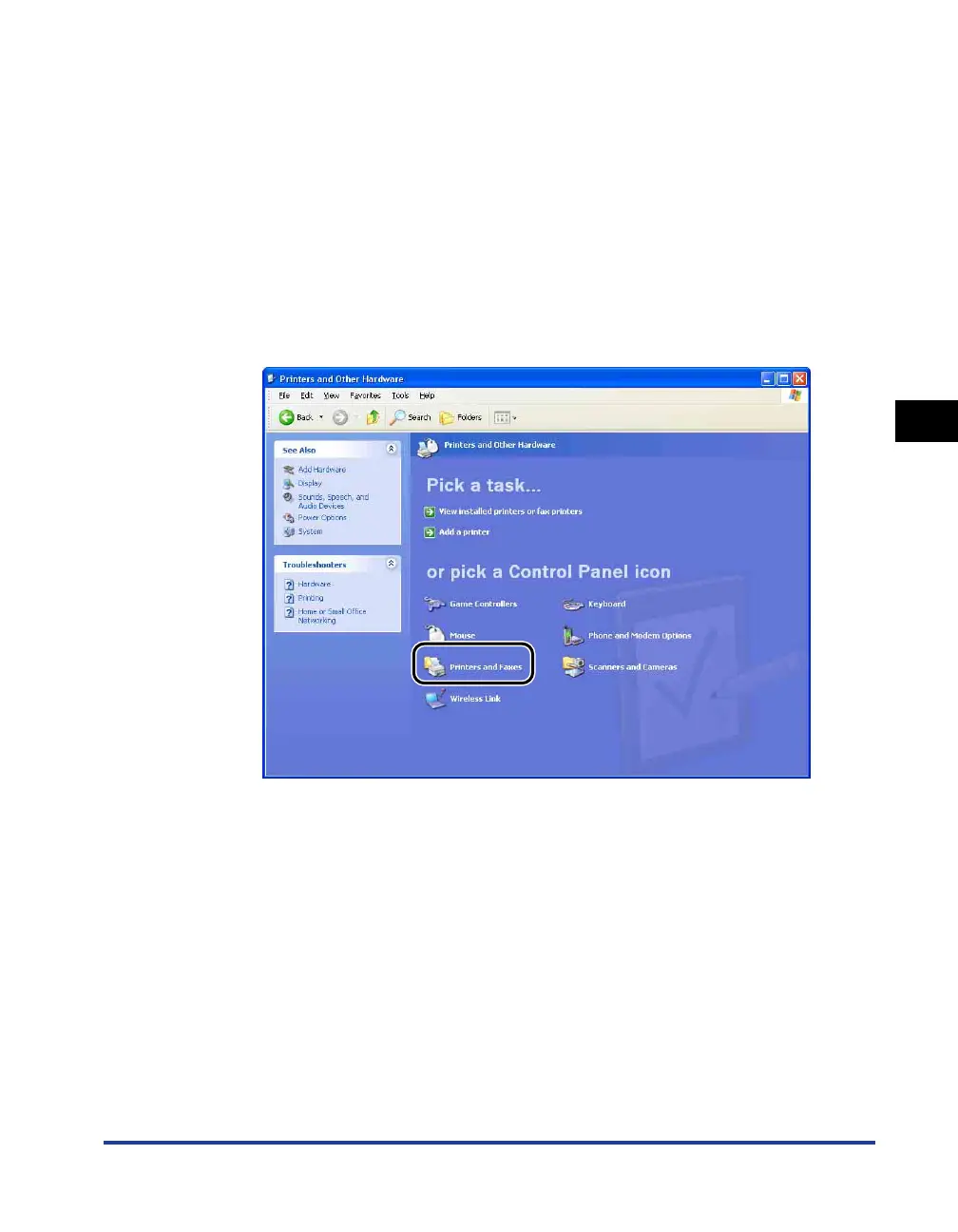 click [Printers and Other Hardware] ➞ [Printers and Faxes].