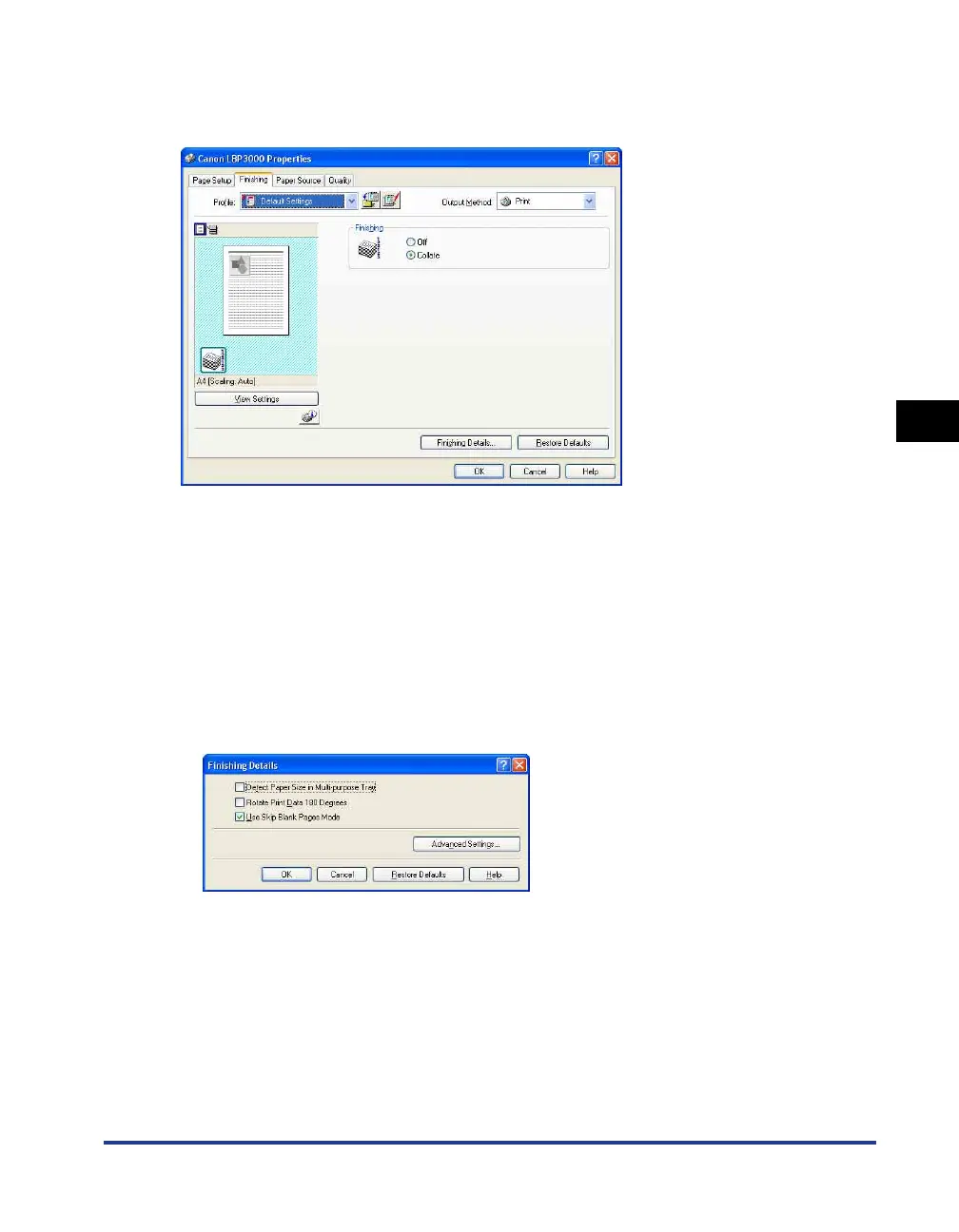 Click [Advanced Settings] in the [Finishing Details] dialog box to open the following dialog