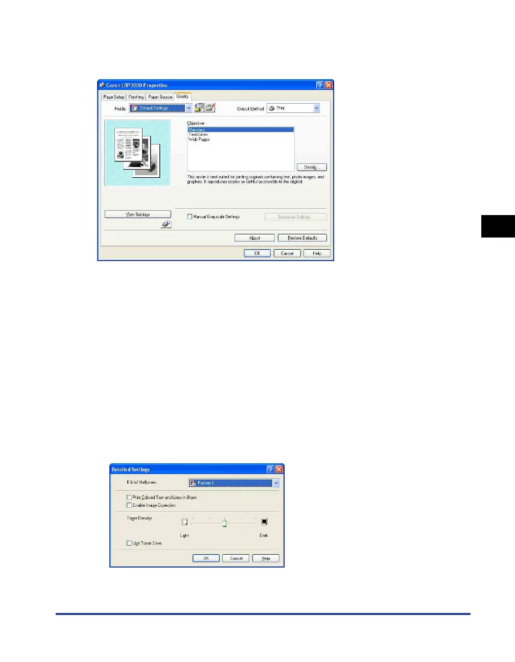 • Standard: This mode is best suited to printing documents containing a mixture of text,