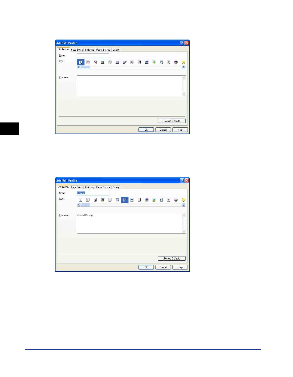 This dialog box allows you to enter the [Name], [Icon], [Comment], and printing