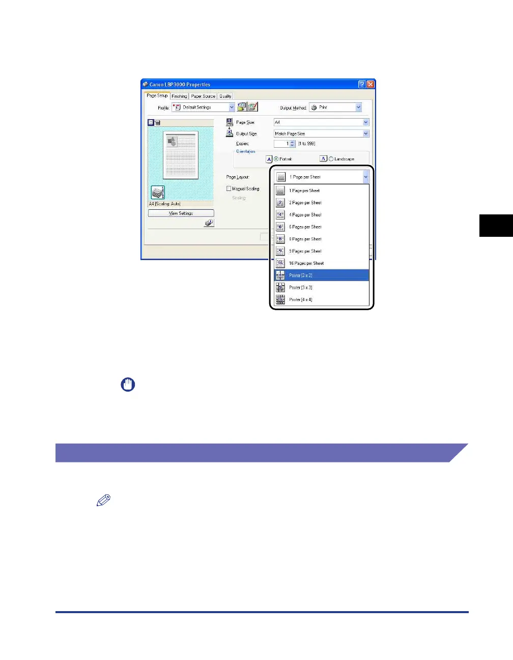 Display the [Page Setup] sheet and select [Poster (N x N)] (N =