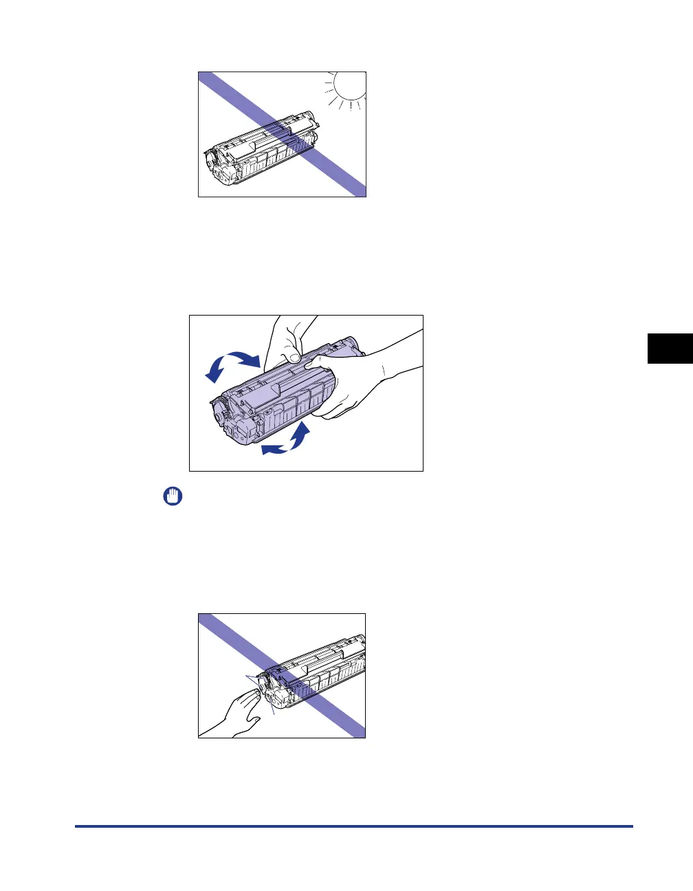 Do not expose the toner cartridge to direct sunlight or strong light.