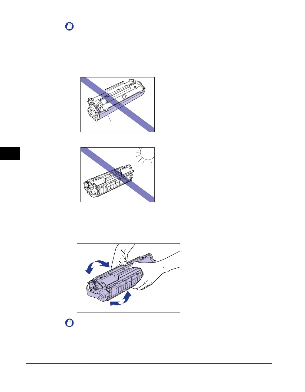 Do not expose the toner cartridge to direct sunlight or strong light.