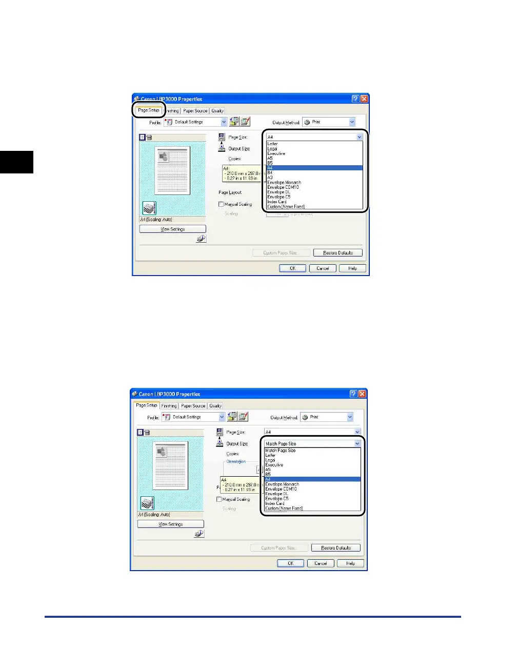 Leave the setting set to [Match Page Size] when the page size and the size of