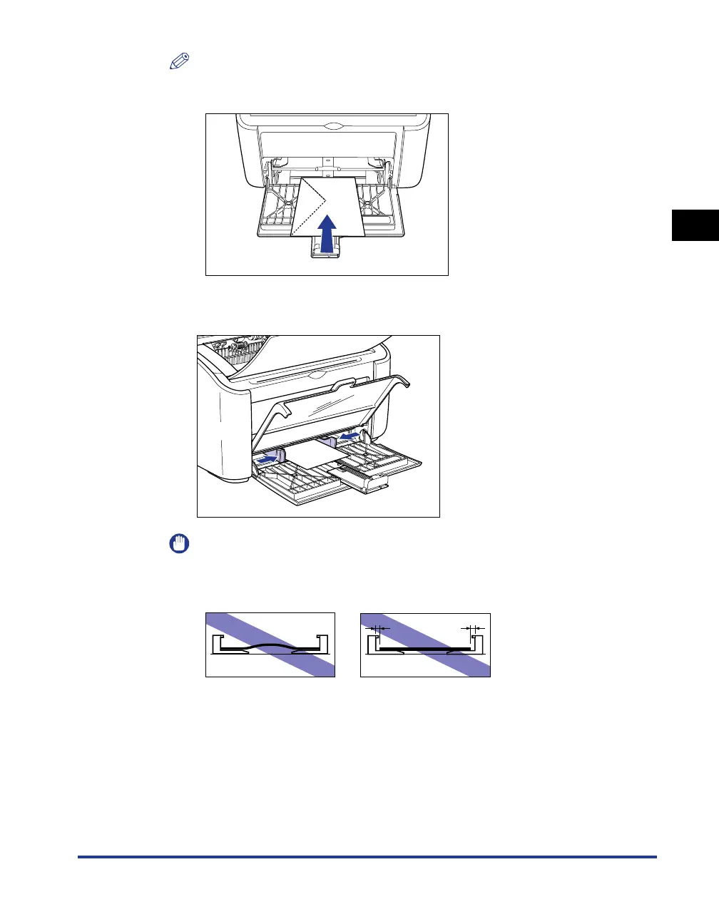 (the side you want to print on) facing up, and the envelope flap on the left side.
