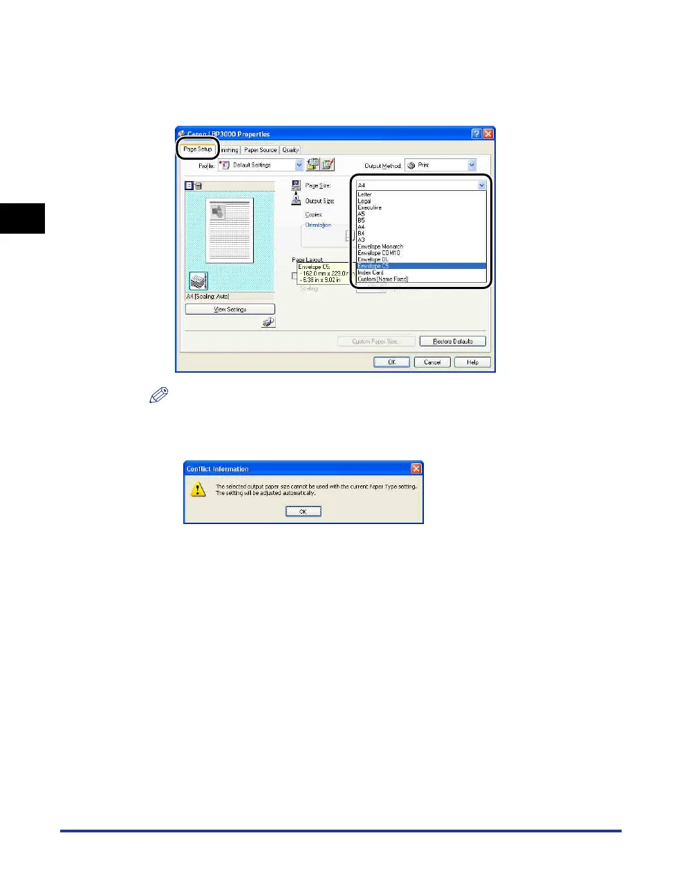 C5], or [Envelope Monarch], the following message appears and the appropriate