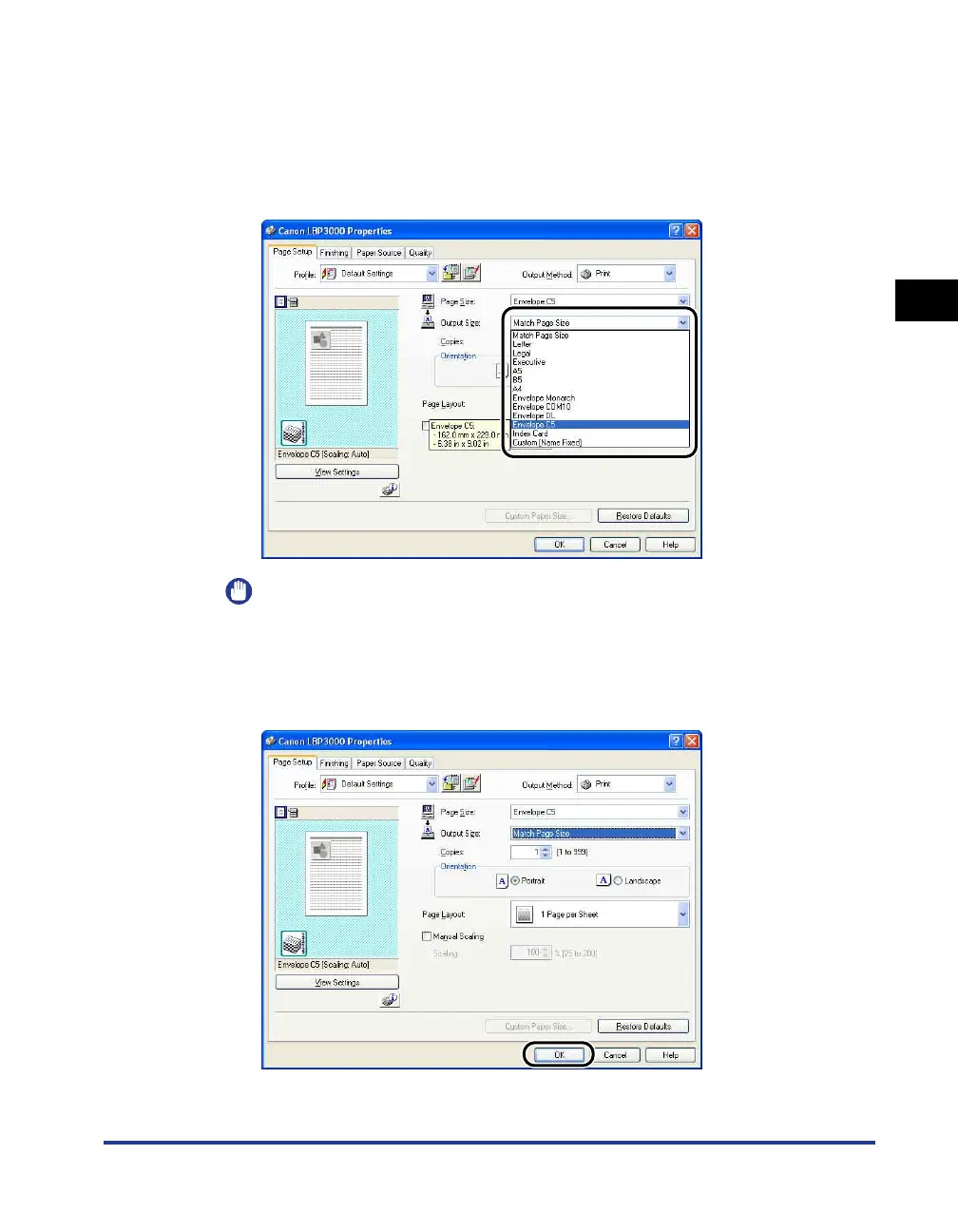 If the [Page Size] and [Output Size] settings are different, the printer produces an