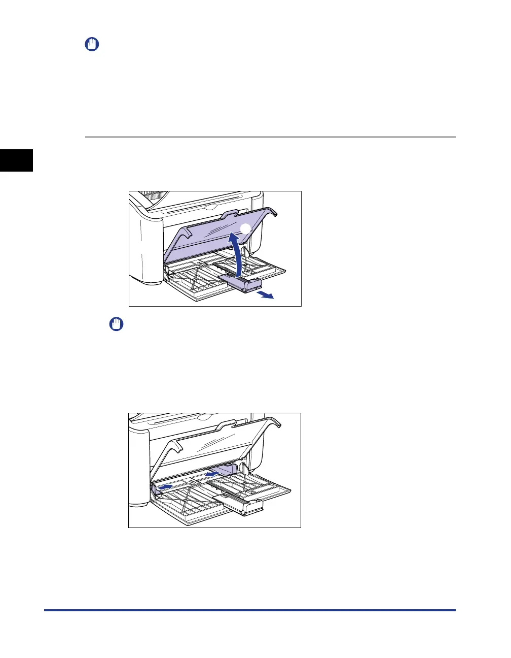 Do not touch or pull paper out of the multi-purpose tray during printing. Doing so may